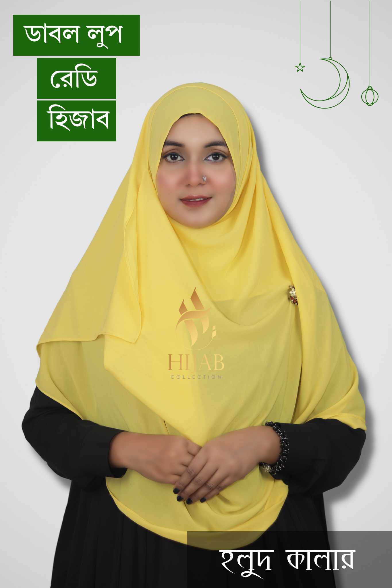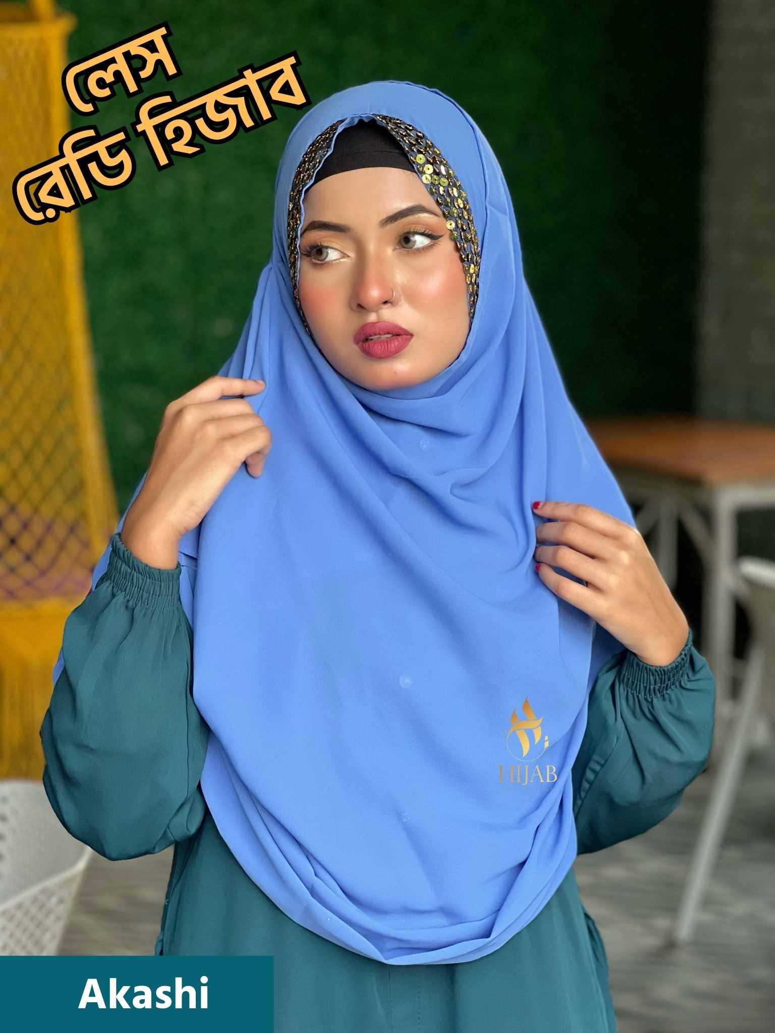 ডায়মন্ড জর্জেট ডাবল লুপ ইনস্ট্যান্ট লেস রেডি হিজাব -HLRH- Deep Peyaz Color