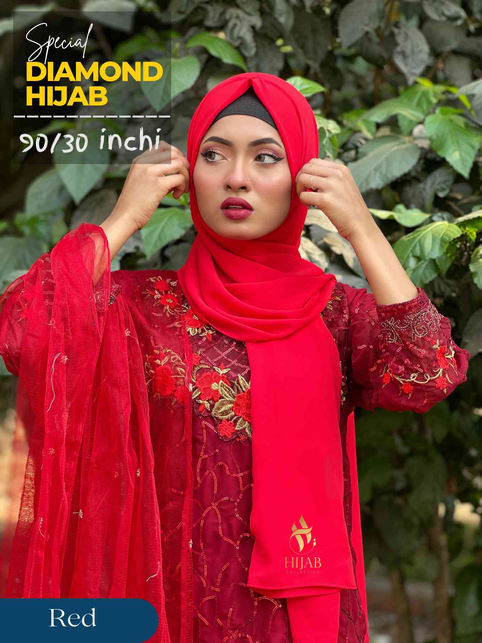 ডায়মন্ড জর্জেট হিজাব ওড়না -DGH- Red Color
